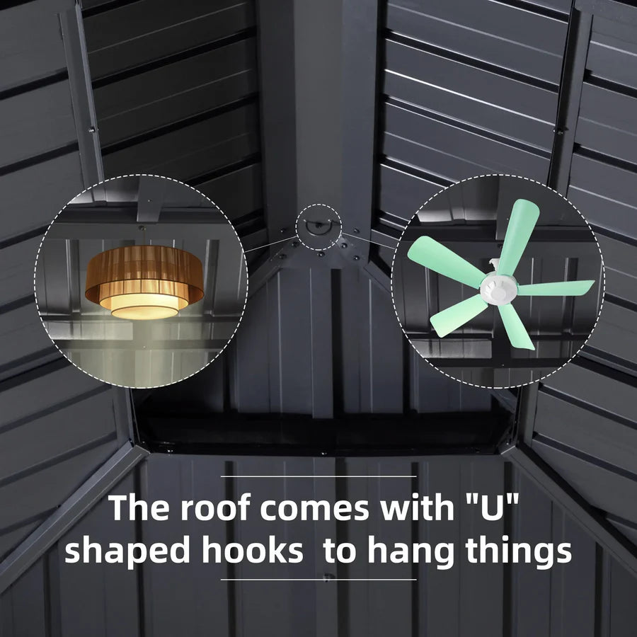 Hardtop Gazebo with Lights combines a classic grey exterior with built-in lighting, making it suitable for various garden and architectural styles while adding a modern, understated elegance. Its waterproof, rustproof, and wind-resistant design ensures durability in all weather conditions, and its dirt- and fade-resistant features keep it looking new over time. Available in multiple sizes, the built-in lighting allows for easy use at night, making it perfect for storing gardening tools, outdoor furniture, or engaging in DIY projects. It's an ideal choice that adds both functionality and convenience to your outdoor space.