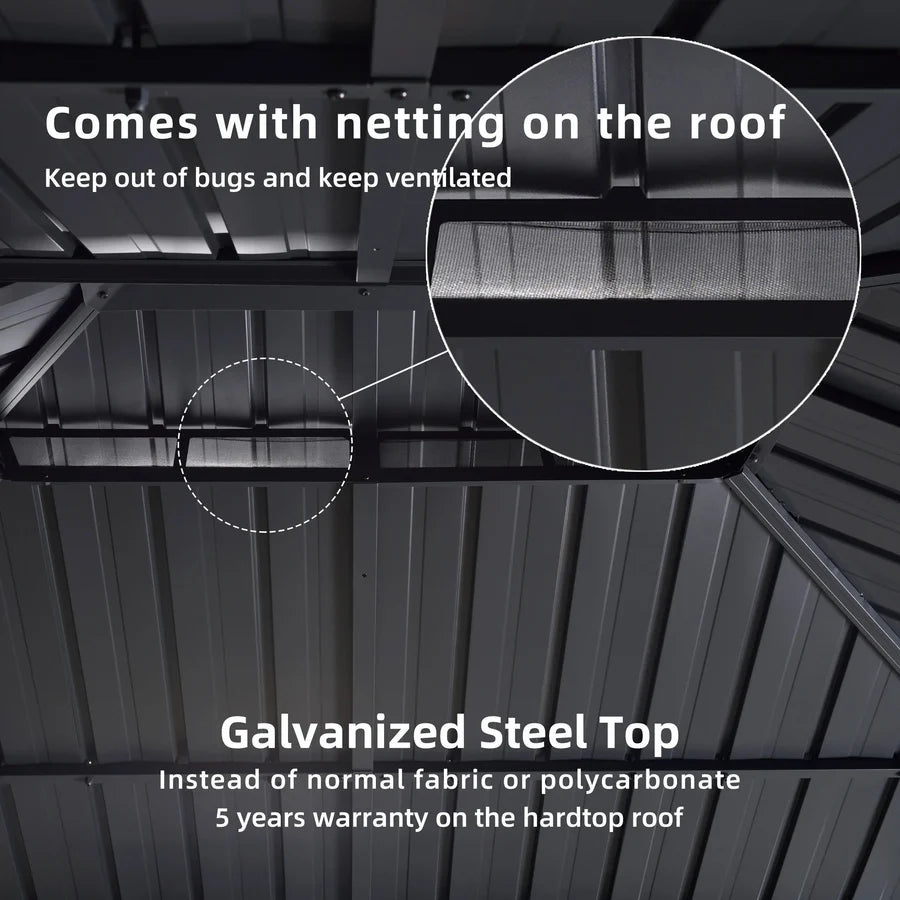 - [ Valid Warranty ] We offer limited time warranty against manufacturing defect for our product: 5 years warranty on the hardtop roof, 2 years warranty on the curtain and netting, 1 year warranty on the frame constructions.