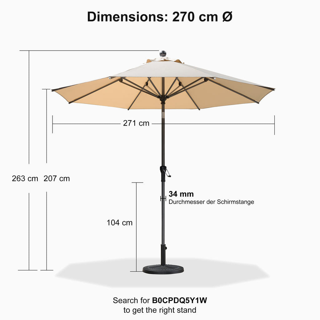 💜 Hand crank system: This market umbrella features a hand crank system with a more beautiful cut-out design for quick opening and closing of the market umbrella.