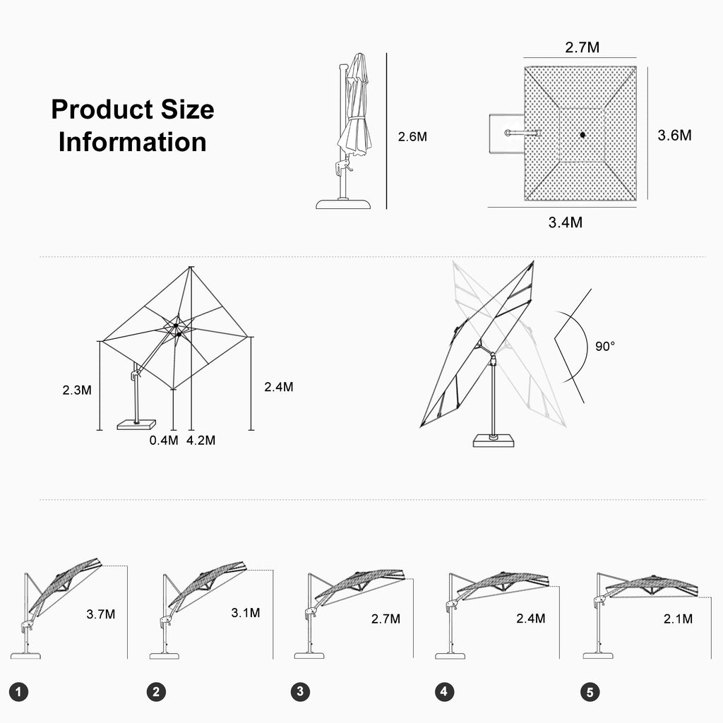 [ Five Height and 360° Rotation ] The crank system of Purple Leaf cantilever umbrella makes it easy to raise and lower the canopy, 5 height and angle to choose, foot pedal allows for complete 360 degree rotation.