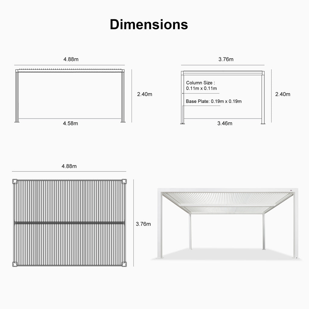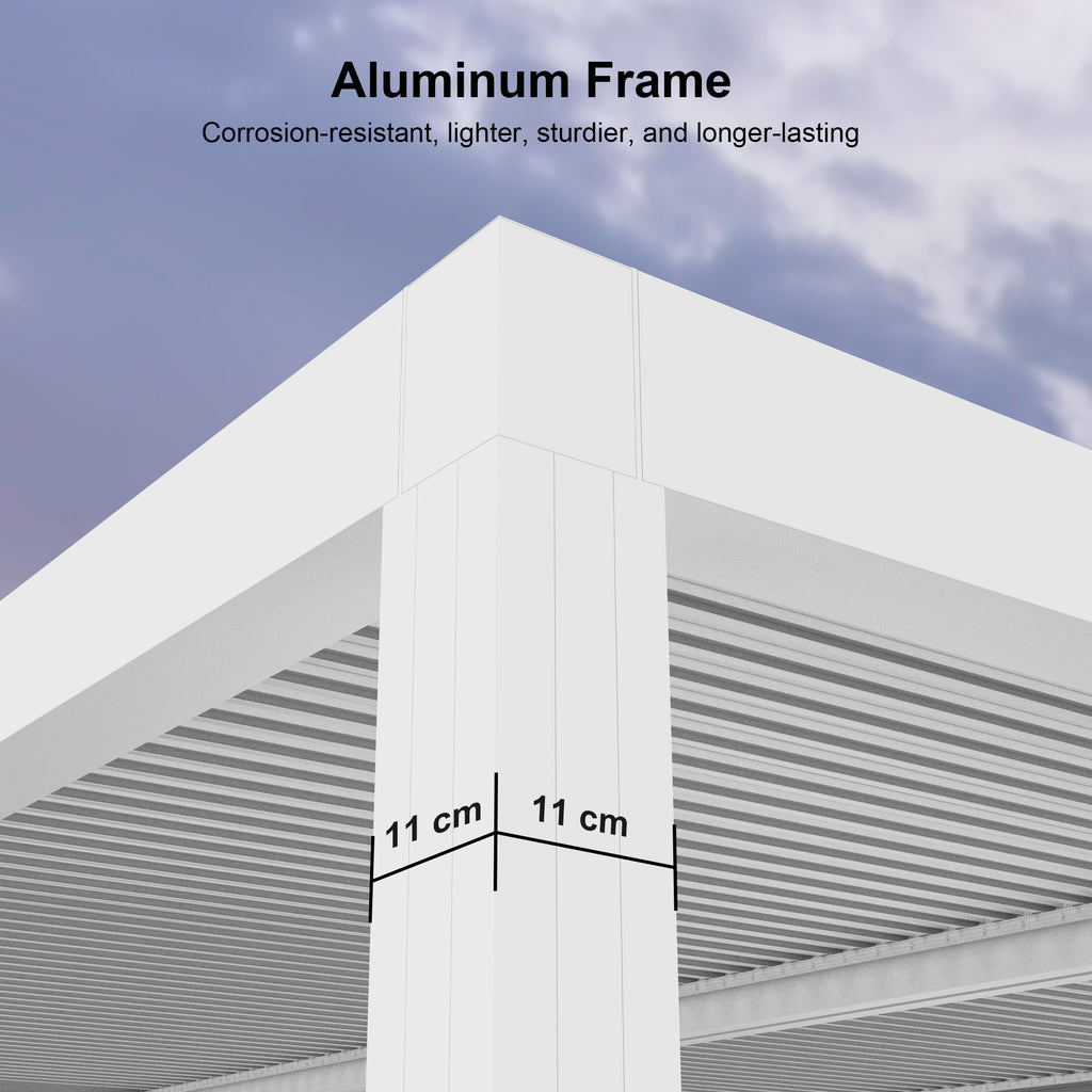 ● Heavy-Duty Material: The Aluminum Pergola is made with premium powder-coated aluminum, featuring a column thickness of 1.5mm to resist rusting, peeling and fading.