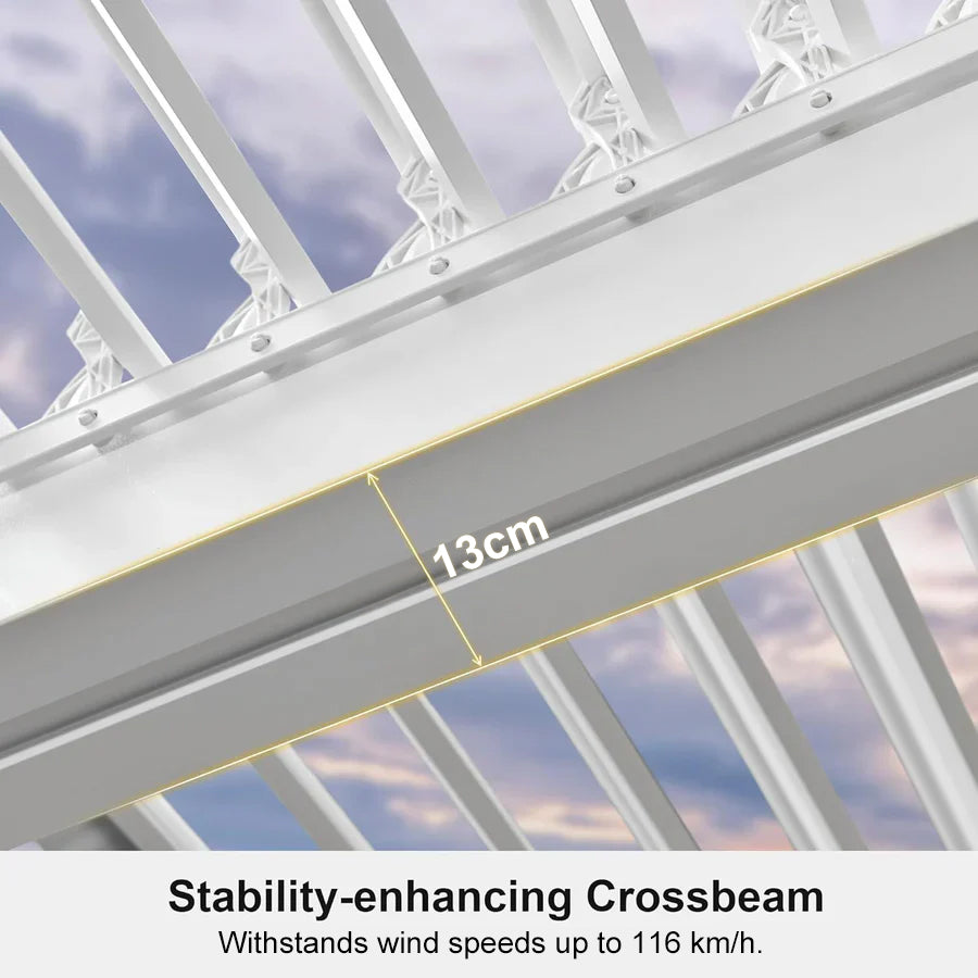● Robust Structure: The crossbeam has undergone an upgrade to dimensions of 11cm × 11cm, reinforcing safety measures and offering wind resistance of up to 72mph.